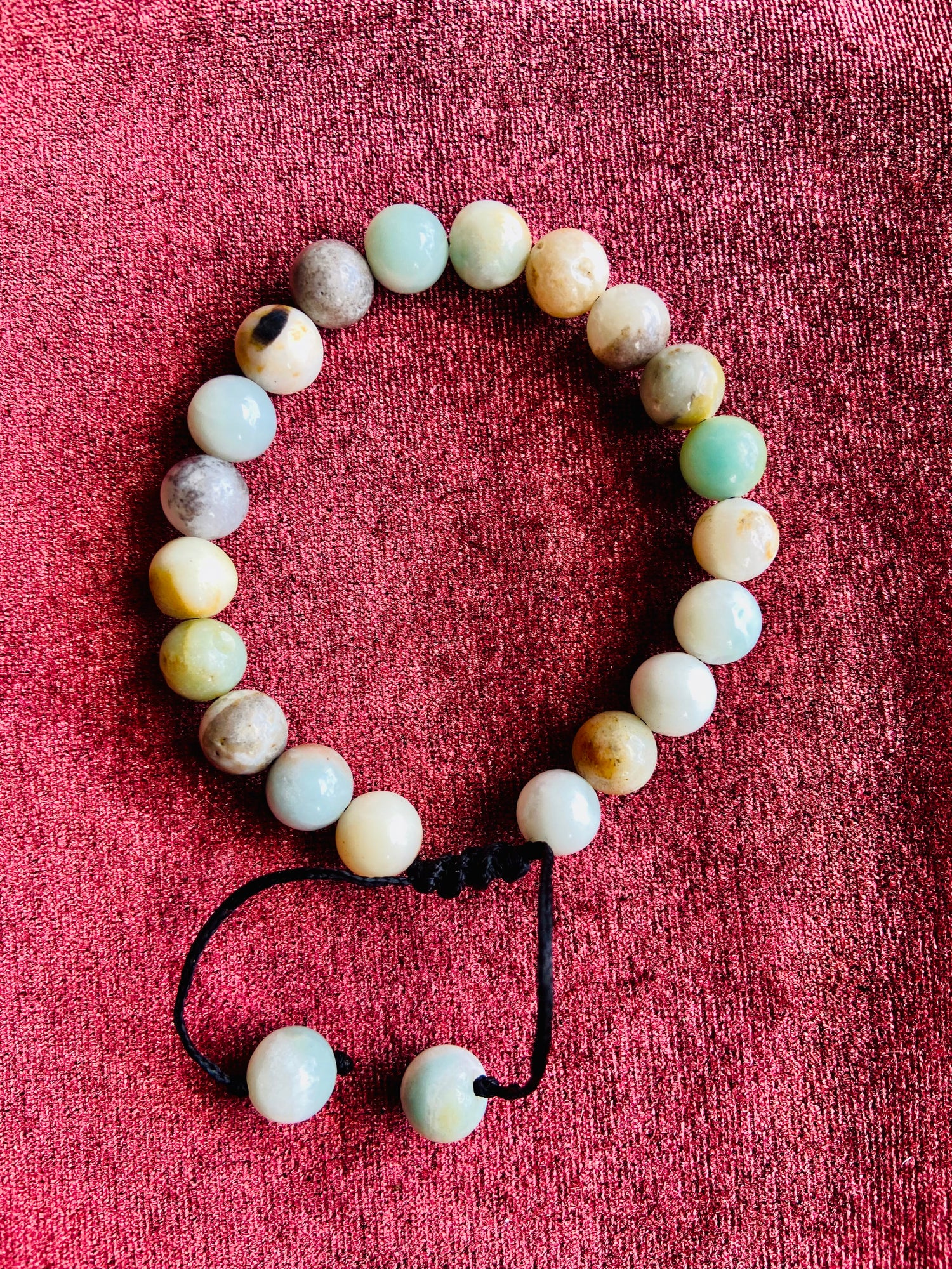 Invite calm, clarity, and balanced energy with this Amazonite Bracelet, handcrafted with strong and long-lasting macramé string. Amazonite, known as the stone of courage and communication, soothes the mind, enhances truthfulness, and fosters harmony in all aspects of life.