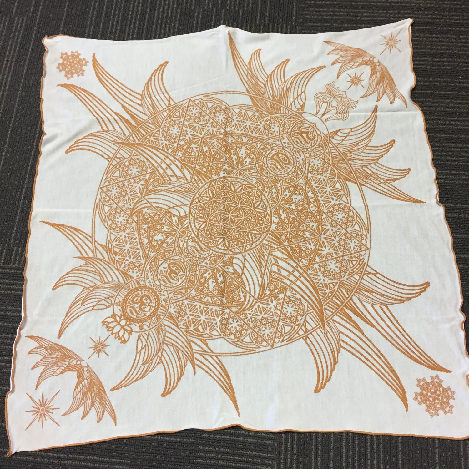Our bandanas are also crystal grid Mandalas as well as Altar Cloths and Visionary Art. These masterpieces are Created by an exclusive collection of Visionary Artists from around the world. Printed with our own original “Crystal Infused Inks” & only the highest quality Ecological fabrics (Beechwood/Modal). Our team is also a “Family” so each piece is lovingly cut, printed & sewn by hand.