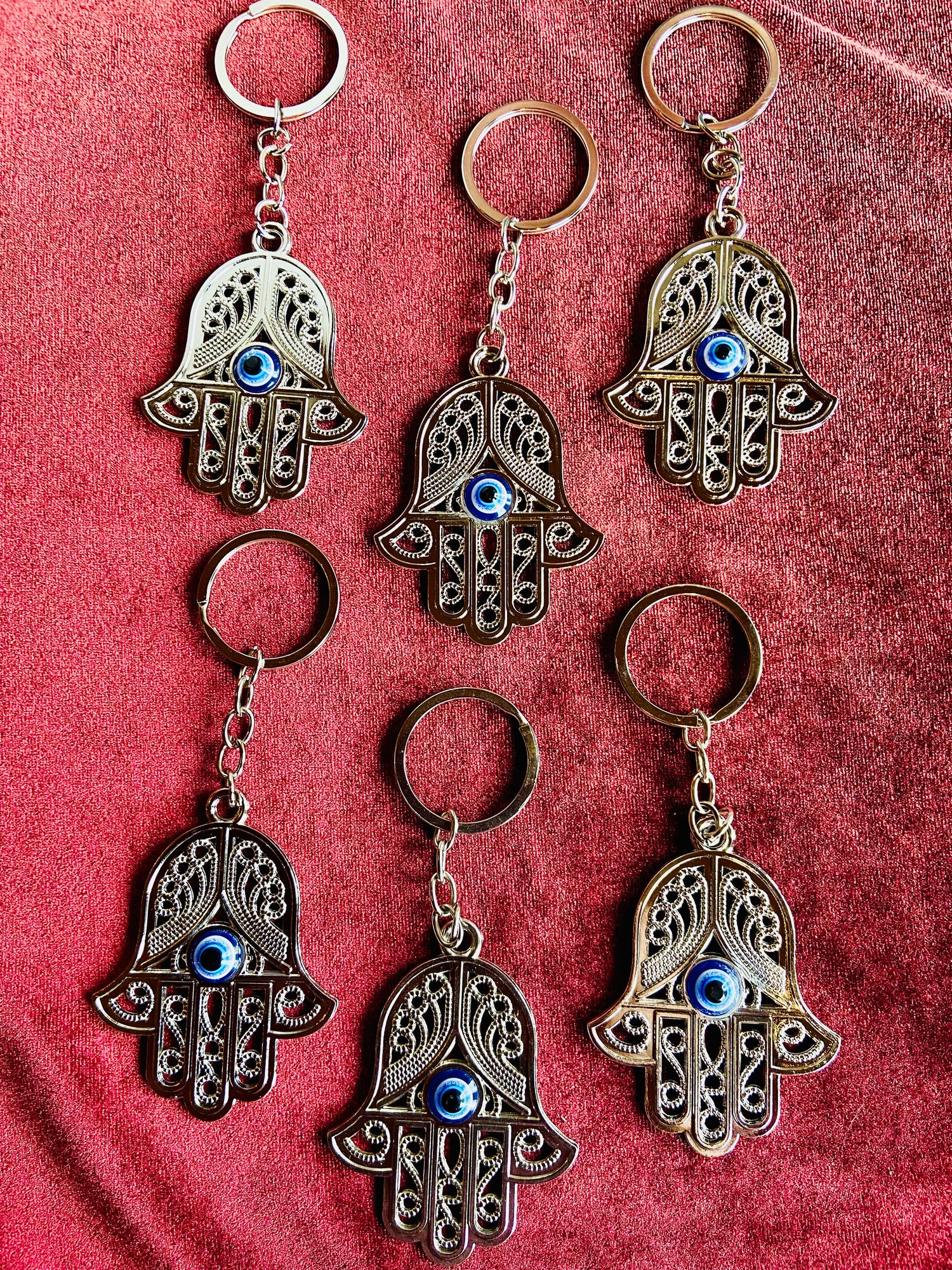 Keep protection and blessings close with our Hand of Fatima Key Ring. Featuring the sacred Hamsa symbol, this key ring is a talisman believed to ward off negative energy and invite peace, harmony, and good fortune into your daily life.