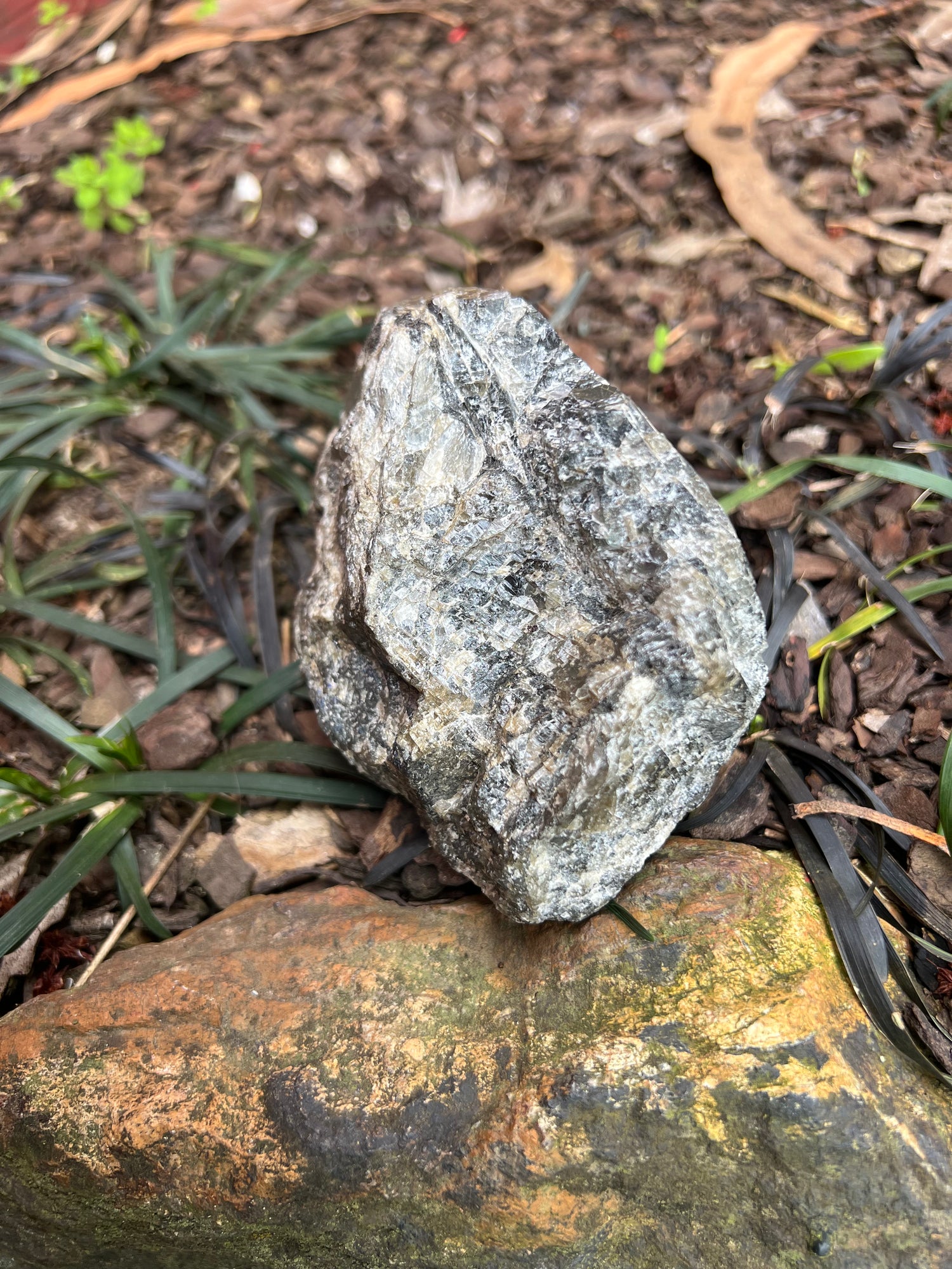 This captivating labradorite reveals two worlds in one piece — one side polished to a luminous sheen, the other left raw and untouched. The polished face shimmers with flashes of blue, gold, and green — a natural phenomenon known as labradorescence — while the rough back shows the stone in its pure, earthy form.