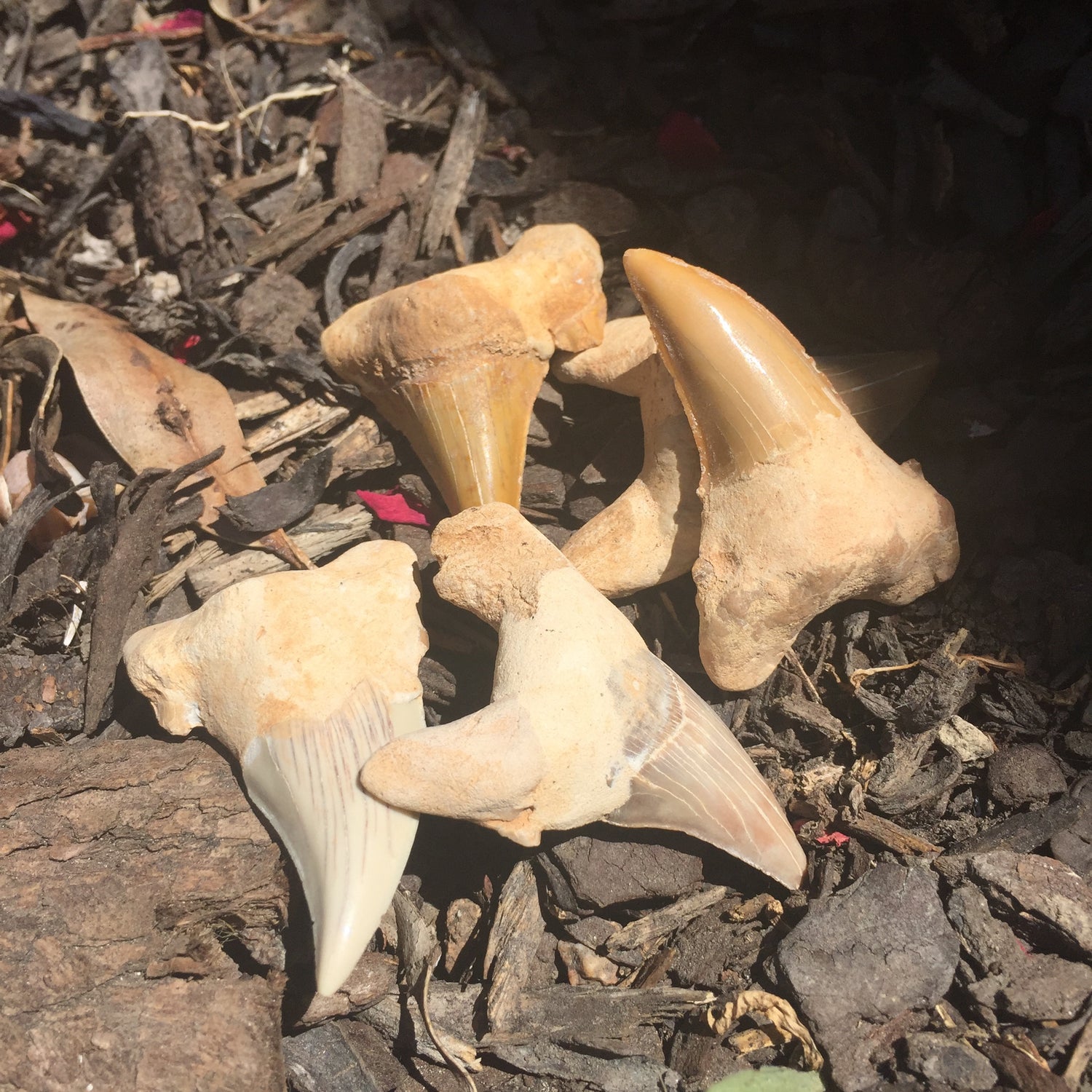 Shark teeth are relics of shark evolution and biology. Shark skeletons are composed entirely of cartilage. Often the only parts of the shark to survive are teeth. Fossil shark teeth have been dated back hundreds of millions of years. The most ancient types of sharks date back to 450 million years ago, and they are mostly known from their fossilized teeth.