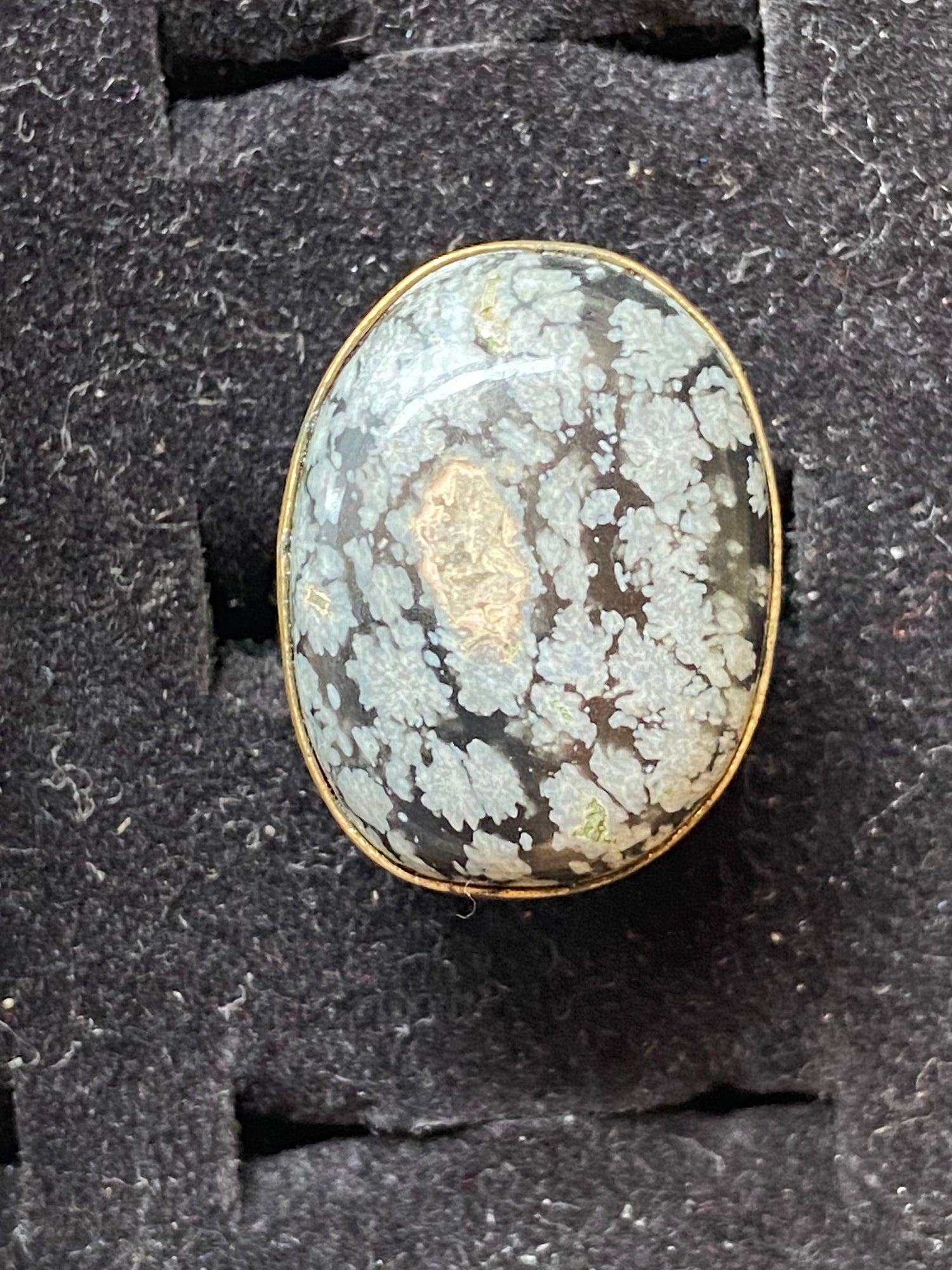 Snowflake Obsidian Ring – Large Size (Bronze Setting)