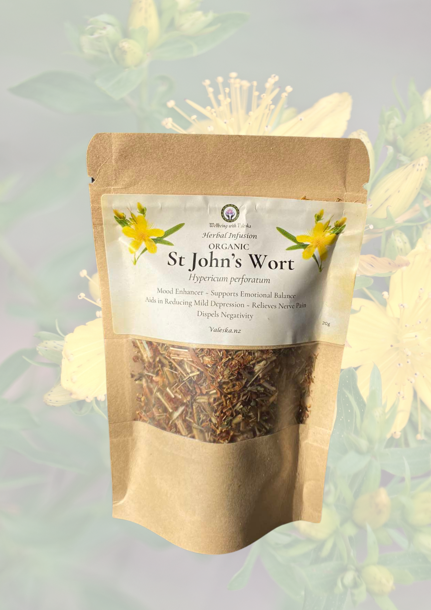 Discover the soothing and mood-enhancing benefits of St. John’s Wort with our 20g infusion pouches. Revered for centuries for its calming properties, St. John’s Wort (Hypericum perforatum) offers a natural way to support emotional well-being and promote relaxation. Our St. John’s Wort infusion delivers a mild, earthy flavor with a gentle, calming effect for your mind and body.