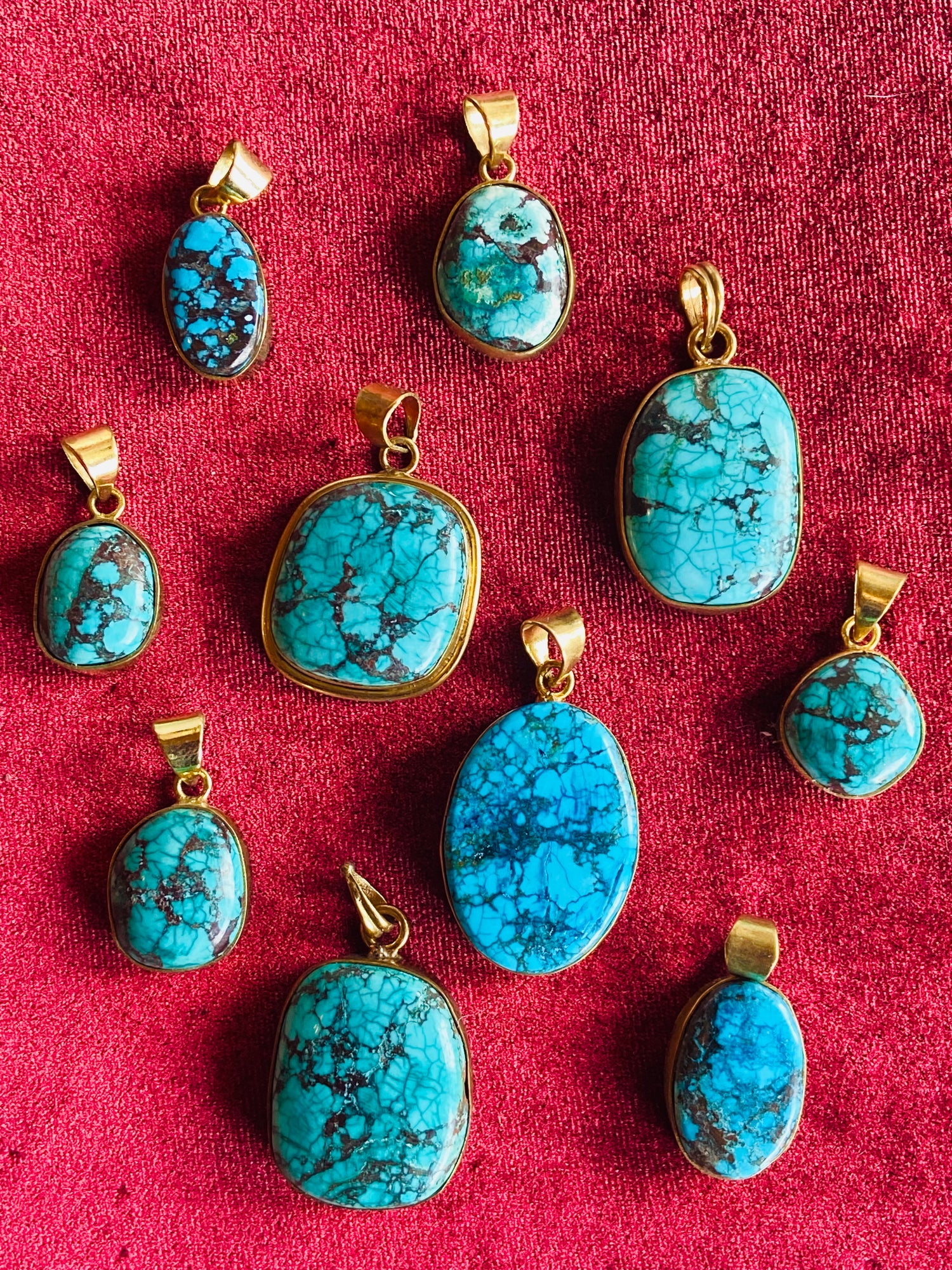Radiating ancient wisdom and serene beauty, this Turquoise Pendant is set in warm bronze, creating a perfect harmony of earth and sky. Turquoise is a sacred stone of protection, truth, and communication — cherished for centuries for its soothing and uplifting energy.